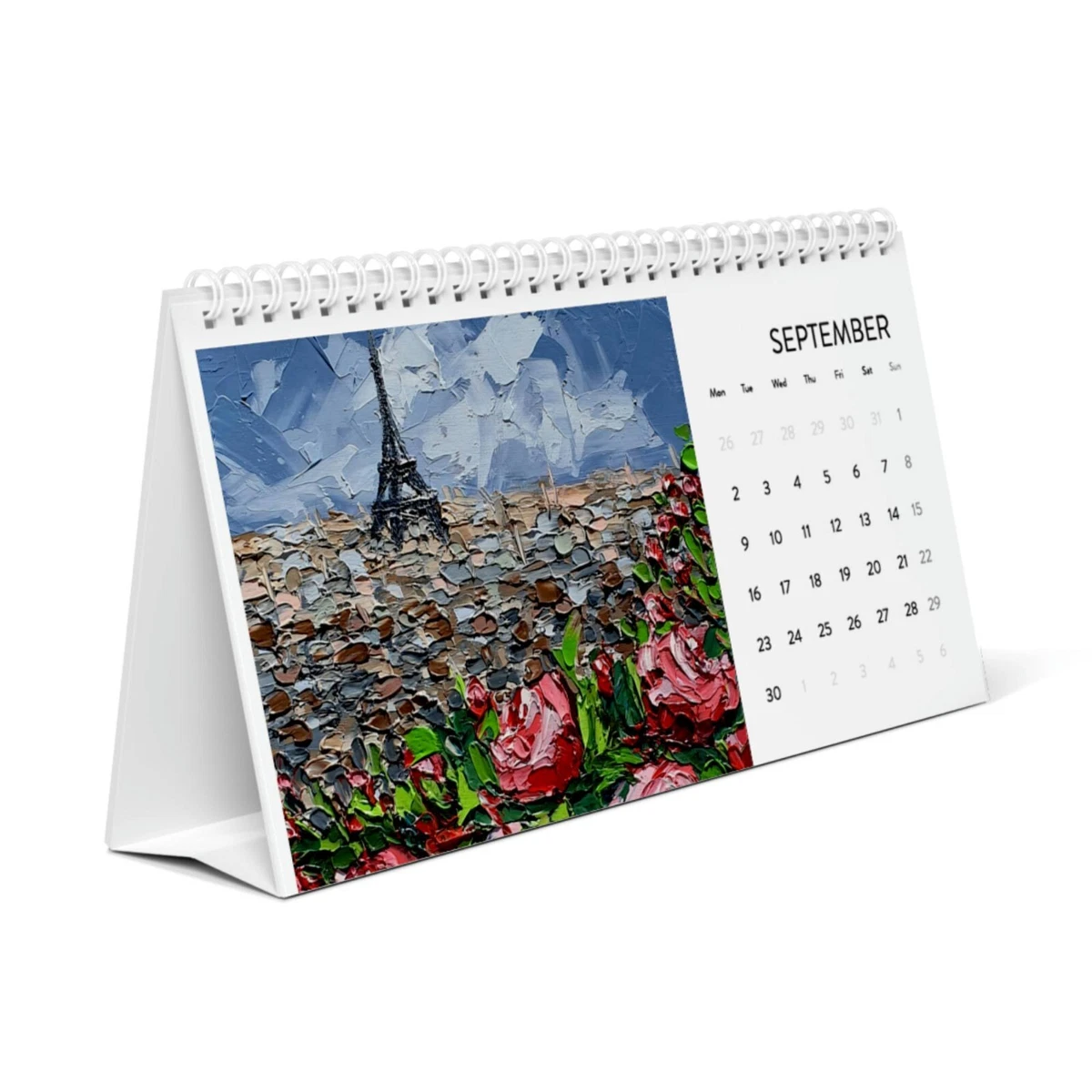 Paris Desk Calendar 2024 Flowers Field Cityscape Eiffel Tower